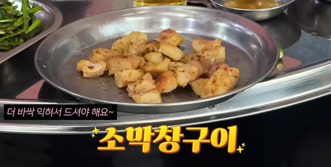 영상에서도 강조됐지만, 이 집의 숨은(혹은 메인) 추천 메뉴는 바로 소막창구이! 막창은 살짝 익혀서 나오는 편인데, 이건 초벌 정도라서 반드시 불판에서 한 번 더 바짝 익혀 드시는 걸 추천드립니다. 그래야 겉은 고소하게, 속은 쫄깃하게 제대로 맛이 살아나요.