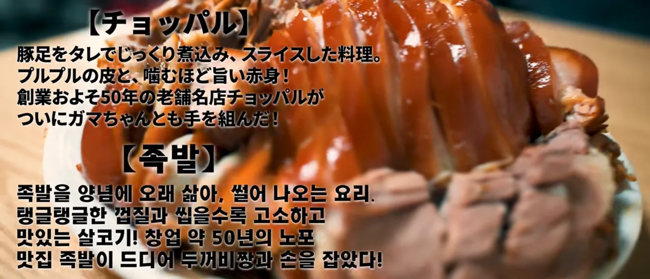 Jokbal é feito cozinhando lentamente a pata do porco em um caldo temperado e depois fatiando. O destaque é a pele elástica e a carne saborosa que fica ainda melhor ao mastigar. Aqui, o tempero não é pesado: a primeira mordida é leve e limpa. Enquanto muitos lugares modernos fazem versões muito salgadas ou picantes, este segue uma linha mais tradicional e clássica. A carne também é descrita como sem cheiro de porco, macia, mas com boa textura.