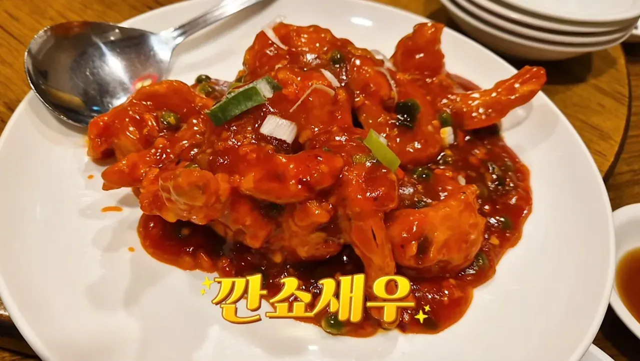 Tiếp theo là tôm kkanpung (깐쇼새우). Món này sống nhờ độ giòn của lớp chiên và độ cân bằng của sốt, và quán làm cực kỳ xuất sắc cả hai. Có thể chưa dám nói “ngon nhất thế giới”, nhưng chắc chắn là kiểu tôm khiến bạn cảm thấy không còn gì để chê.